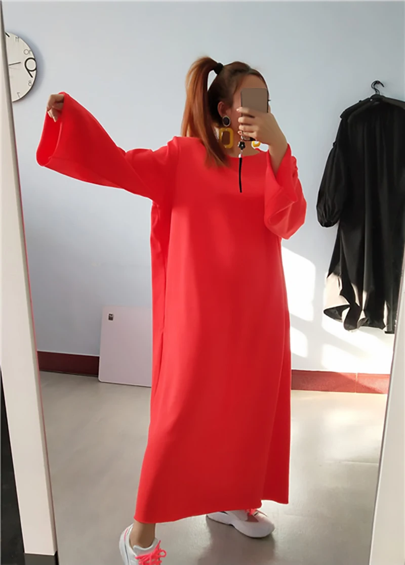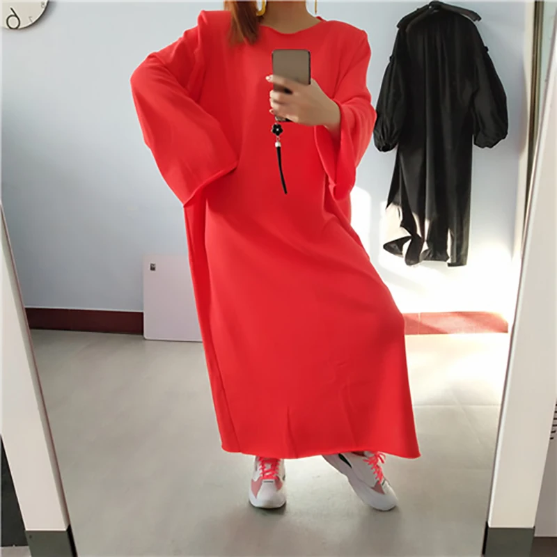 [EAM] Women Multicolor Big Size Sweatshirt Dress New Round Neck Long Sleeve Loose Fit Fashion Tide