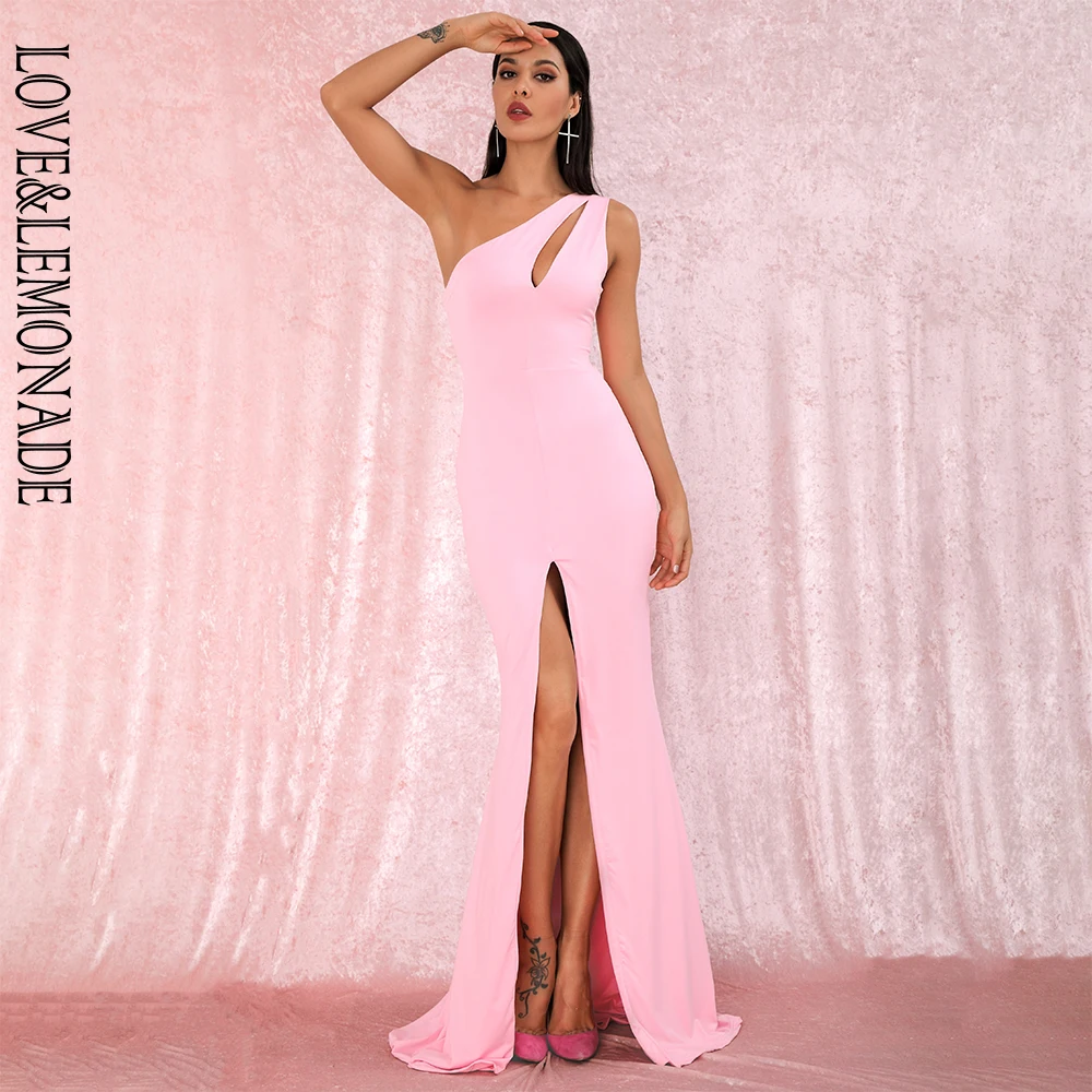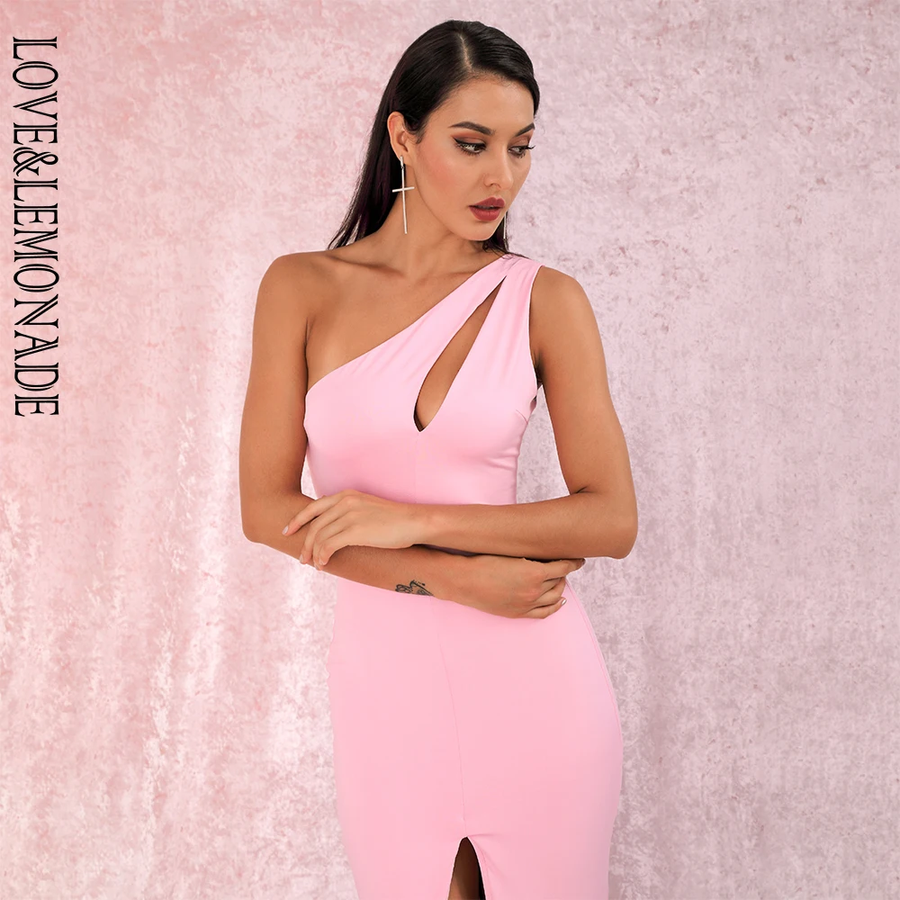 REVIEW TOP SELLER LOVE&LEMONADE Sexy Pink One-Shoulder Cut Out Bodycon Elastic Material Split Party Maxi Dress LM8192